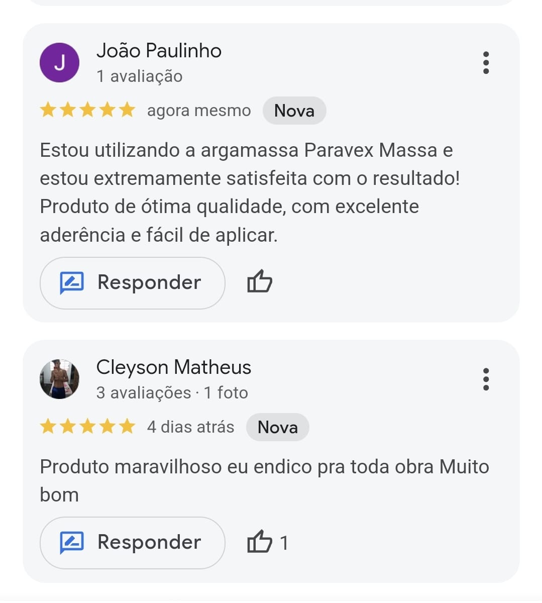 A satisfação dos nossos clientes é a nossa maior prioridade. Veja o que eles têm a dizer sobre a qualidade da nossa argamassa Paravex Massa e o atendimento do Atacadão da Argamassa. Cada depoimento reflete o compromisso da nossa empresa com a excelência em cada projeto.